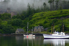 上午我们先到达岛上最著名的高峰 OLD MAN OF STORR老人岩,山高719米,徒步沿着林阴小路登上老人岩的山顶纵观大西洋美景。离老人岩不远处的Lealt 瀑布,是岛上最大的一组瀑布,观看山水洪流从峡谷流向大海的壮观。Kilt rock苏格兰岩石群,它是岛上最有规则的一组岩石断面,那有规则的皱纹,在远处看过去就像苏格兰裙。继续前进,我们来到小岛生活博物馆, 这里展示了岛上19世纪的生活,矮小的房子,铁丝固定的屋顶,无不具有独特的小岛文化。之后我们来到小岛上的Dunvegan 城堡-这所800多年历史的城堡曾经是MacLeod 氏族的族长的堡垒并且是他们的居住地。从城堡的后花园港口,我们可乘小船去大海中的小岛看野生海豹,亲密接触这可爱独特的海洋动物。晚上回到我们的PORTREE小镇。